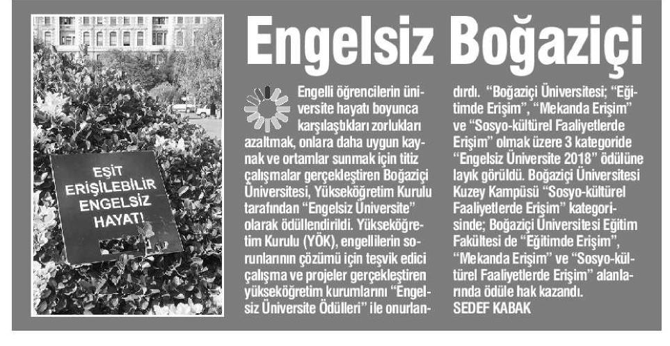 Boğaziçi Üniversitesi'ne Engelsiz Üniversite ödülü