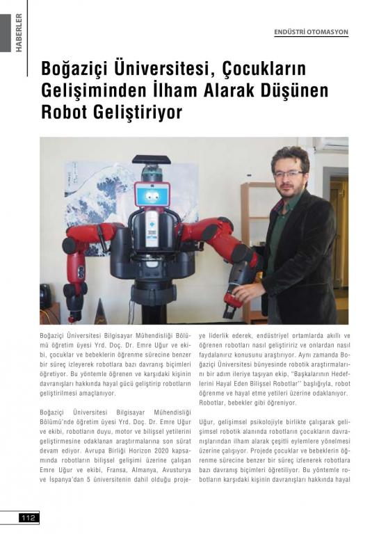 Boğaziçi Üniversitesi, çocukların gelişiminden ilham alarak düşünen robot geliştiriyor