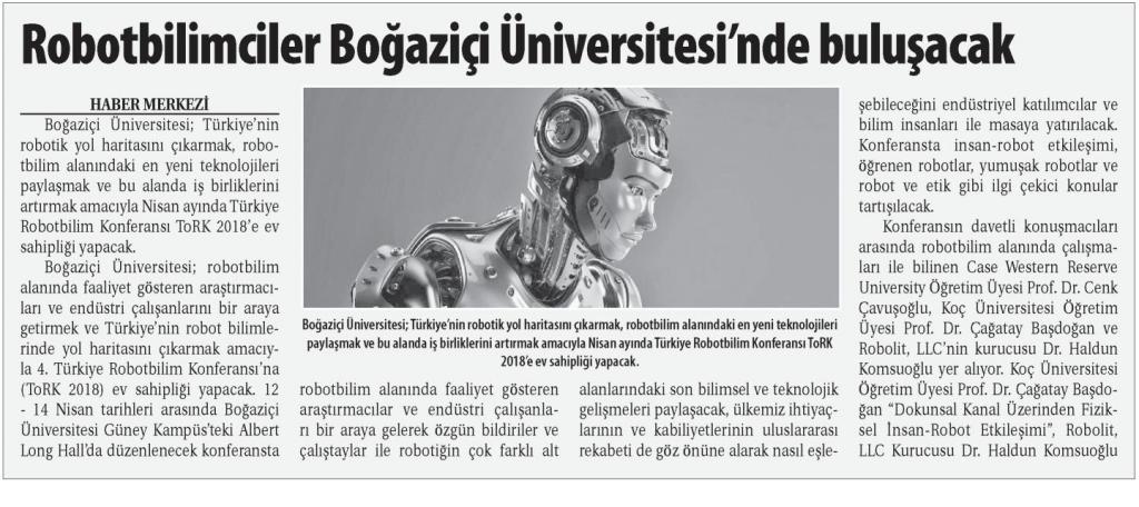 Robotbilimciler Boğaziçi Üniversitesi'nde buluşacak