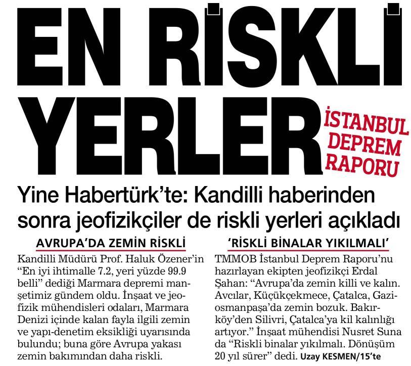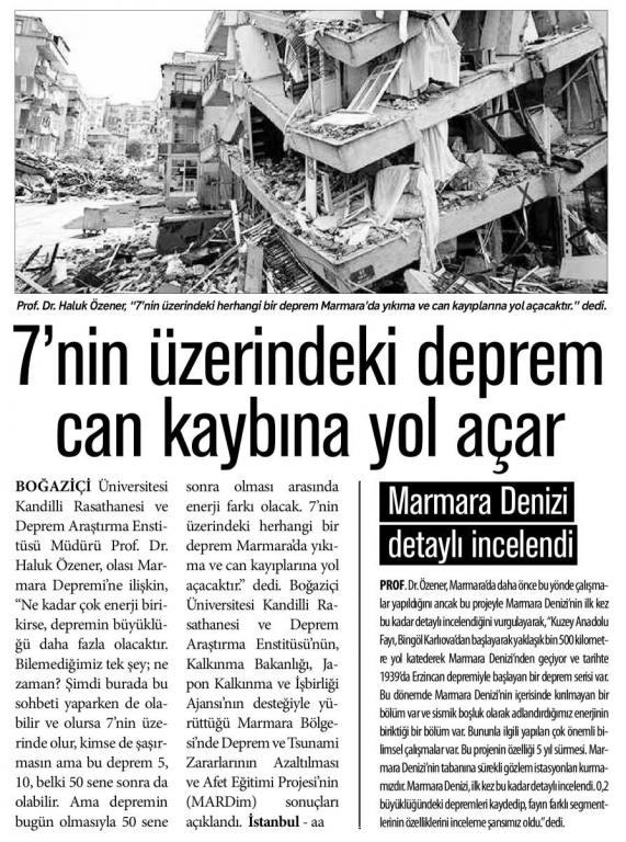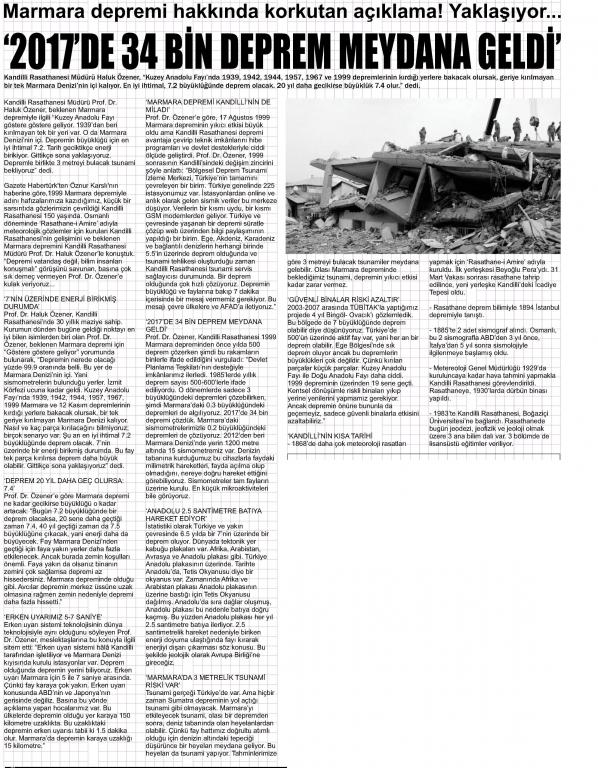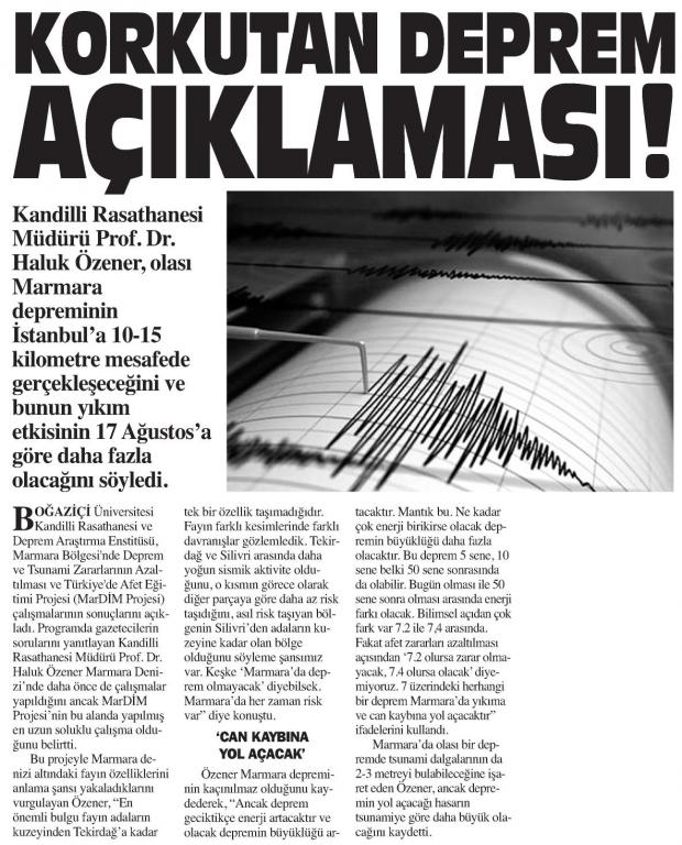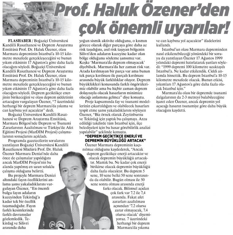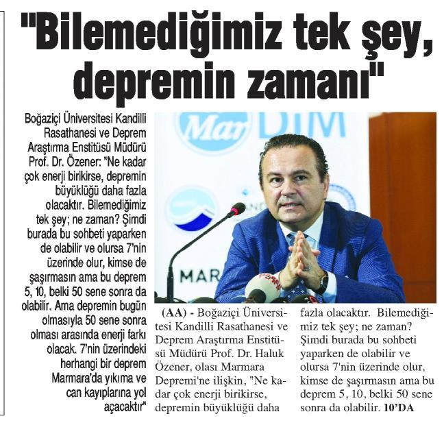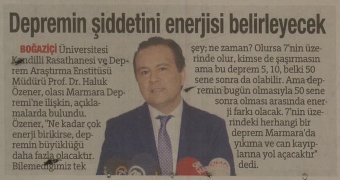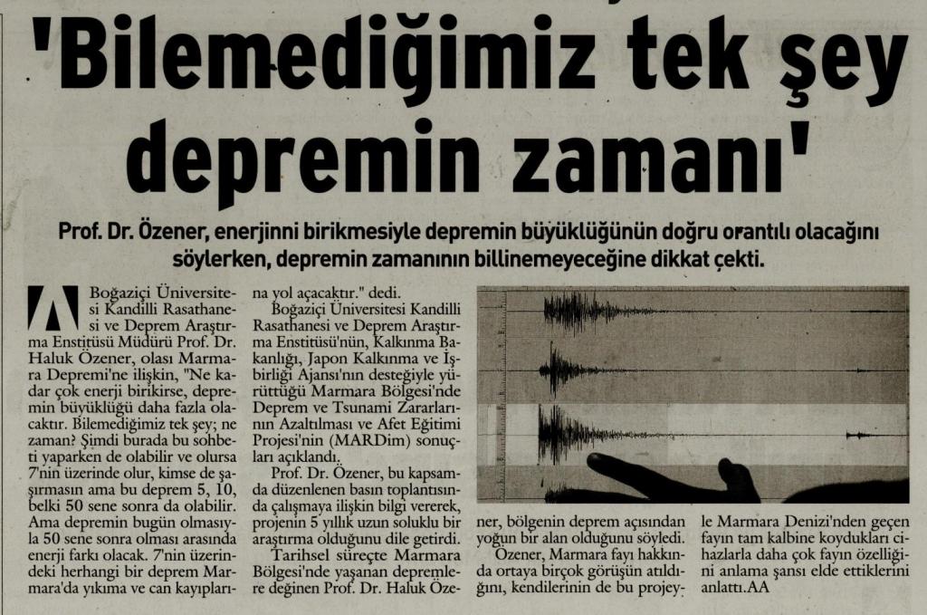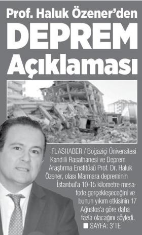 Prof. Dr. Haluk Özener'den Deprem Açıklaması