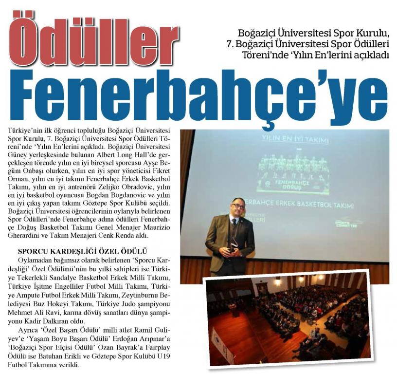Ödüller Fenerbahçe'ye