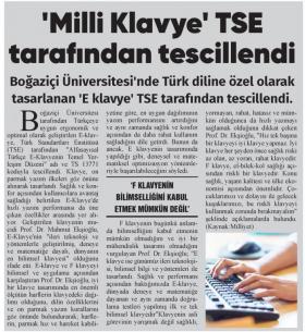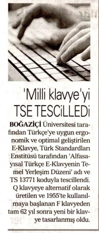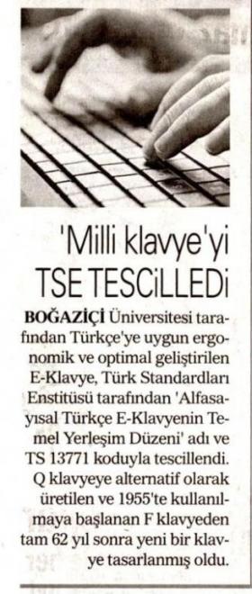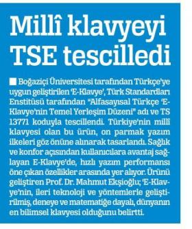 ''Milli klavye'' TSE tarafından tescillendi