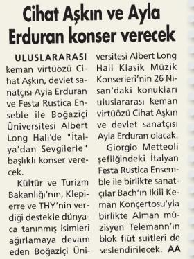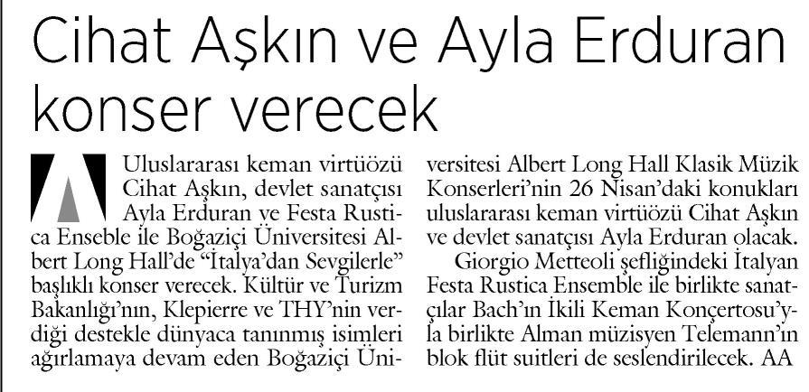 Cihat Aşkın ve Ayla Erduran konser verecek