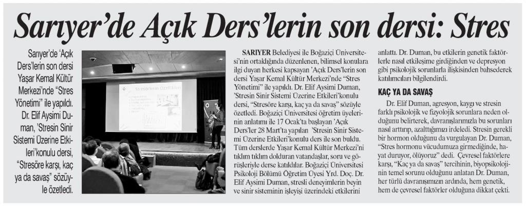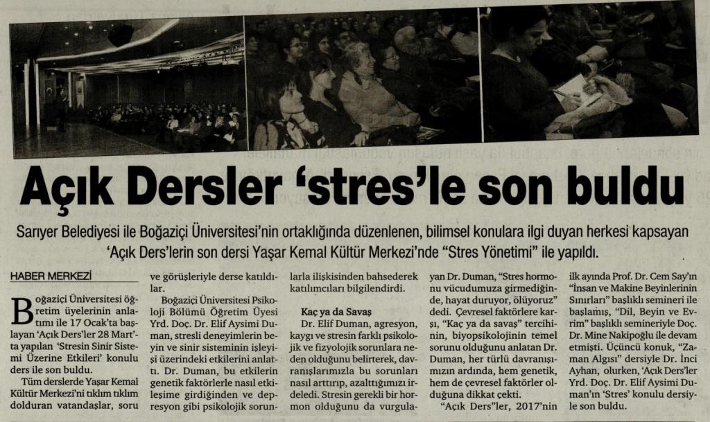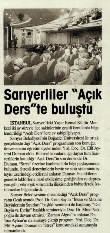 Sarıyer'de ''Açık Ders'lerin son dersi: Stres