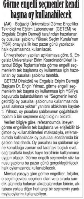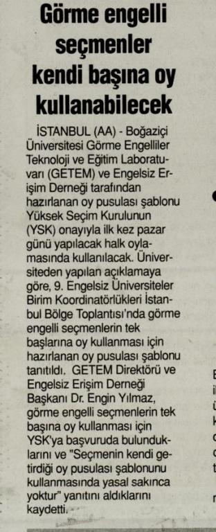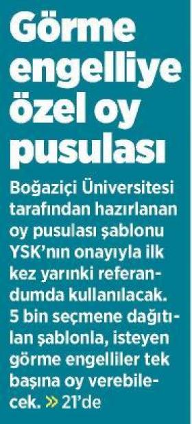 Görme engelliye özel oy pusulası