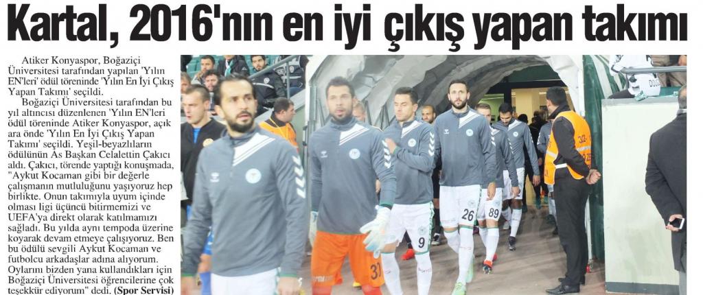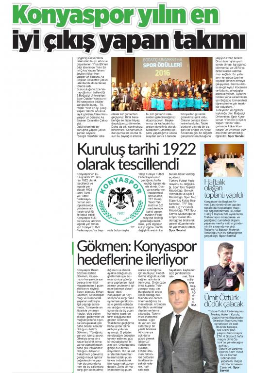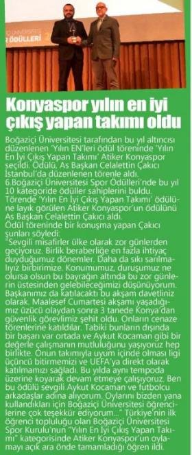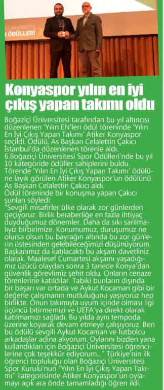 Konyaspor yılın en iyi çıkış yapan takımı oldu