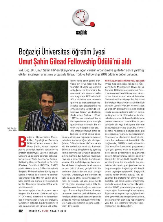 Boğaziçi Üniversitesi öğretim üyesi Umut Şahin Gilead Fellowship Ödülü'nü aldı
