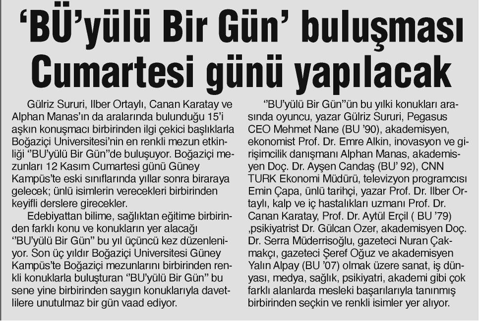 "BÜ'yülü Bir Gün" buluşması cumartesi yapılacak