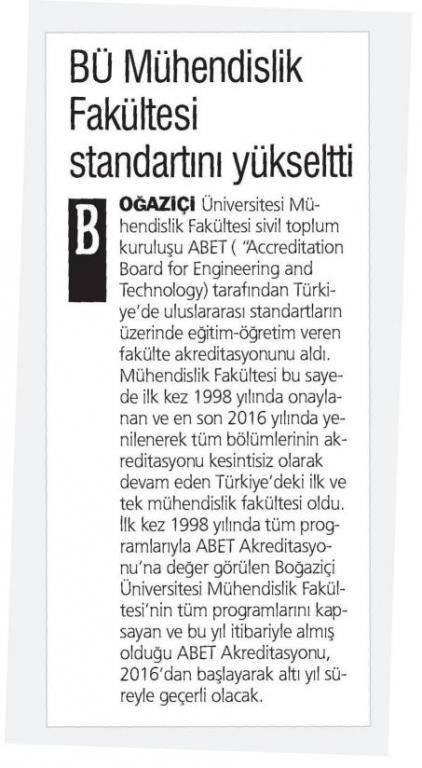 Boğaziçi'ne mühendislikte uluslararası akreditasyon