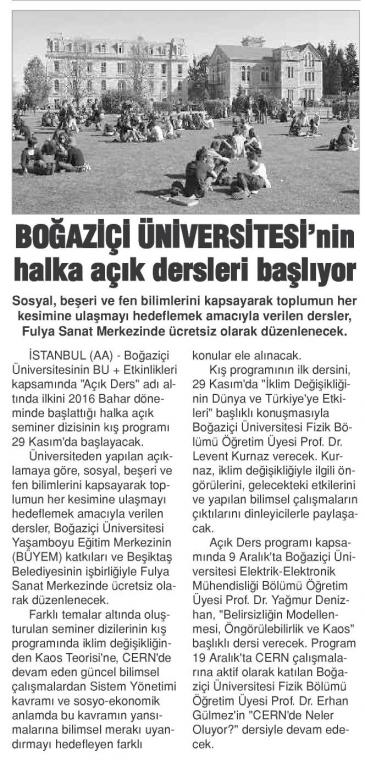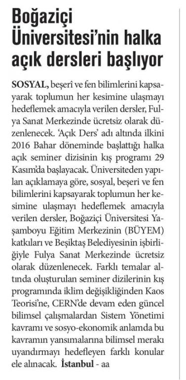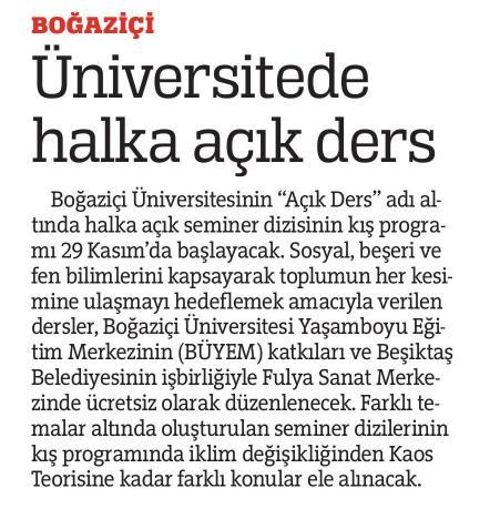 Boğaziçi Üniversitesi'nin halka açık dersleri başlıyor