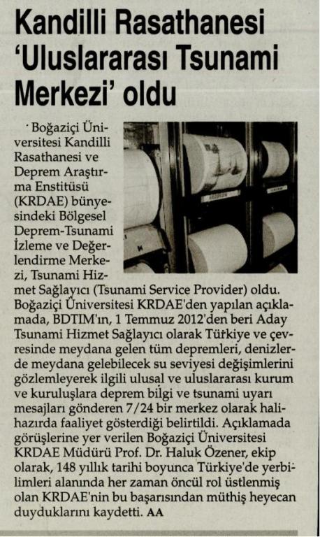 Kandilli Rasathanesi Tsunami Merkezi oldu
