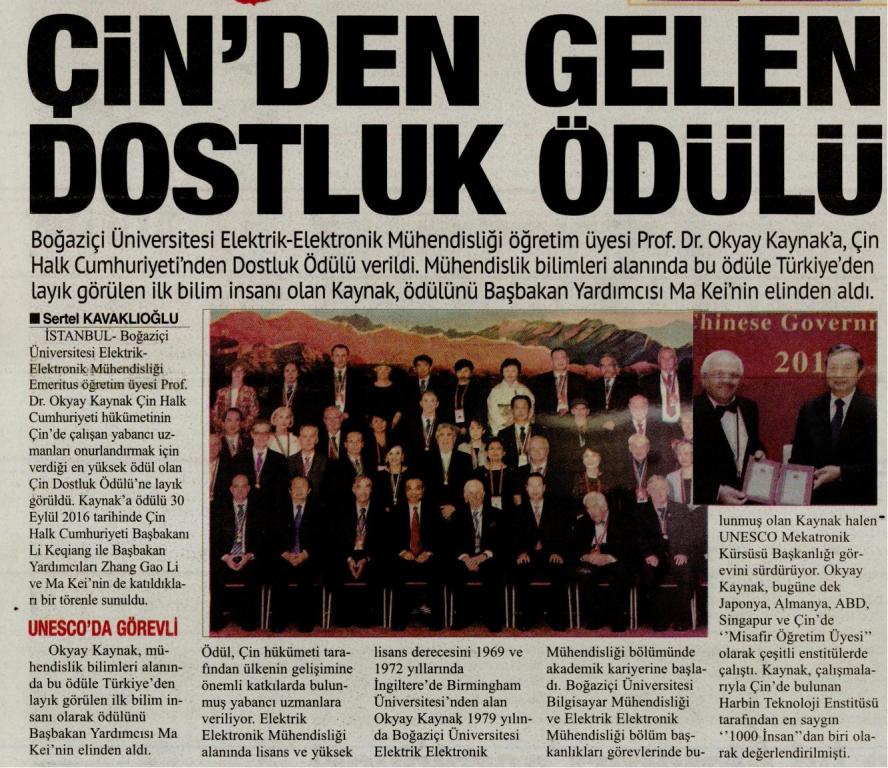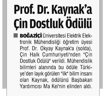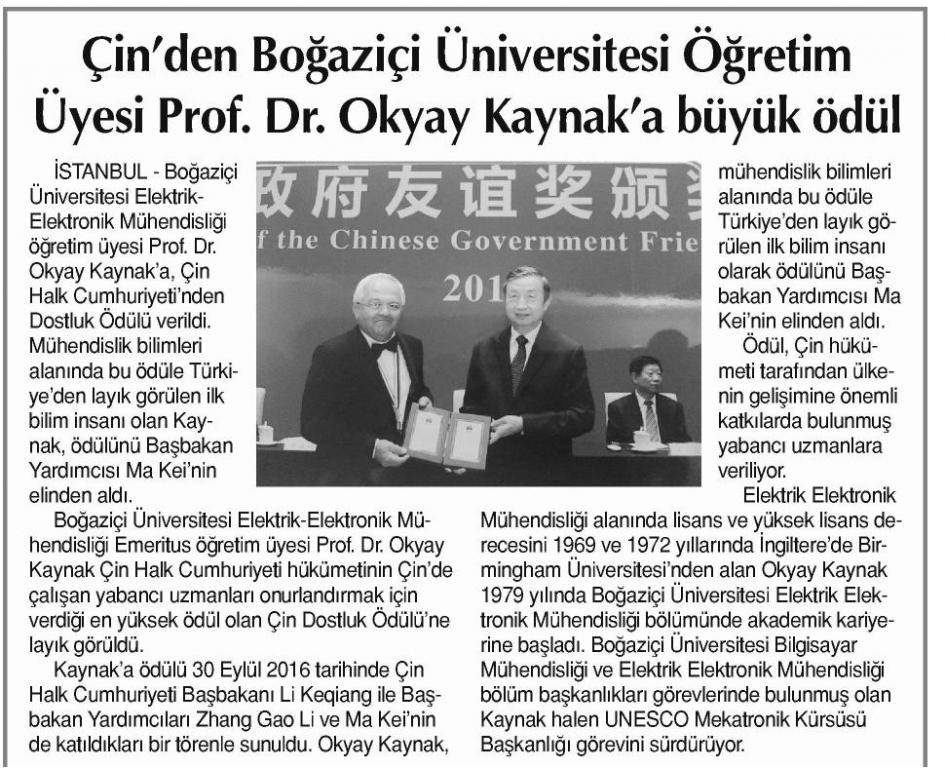 Çin'den Boğaziçi Üniversitesi öğretim üyesi Kaynak'a büyük ödül