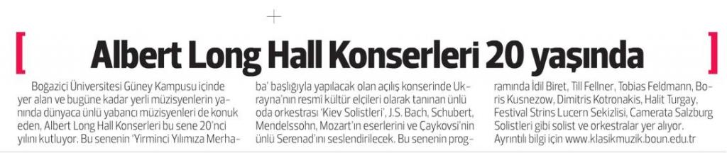 Albert Long Hall'de 20. yılın görkemli konserleri