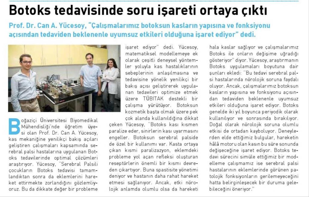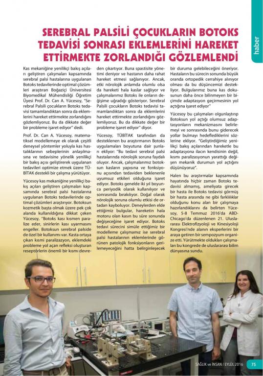 Serebral palsili çocukların botoks tedavisi sonrası eklemlerini hareket ettirmekte zorlandığı gözlemlendi