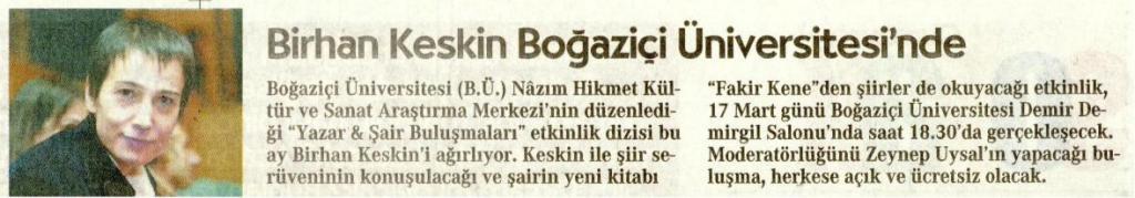 Birhan Keskin Boğaziçi Üniversitesi'nde