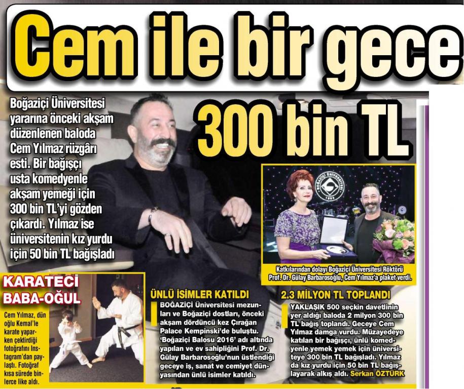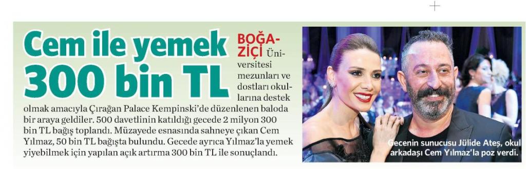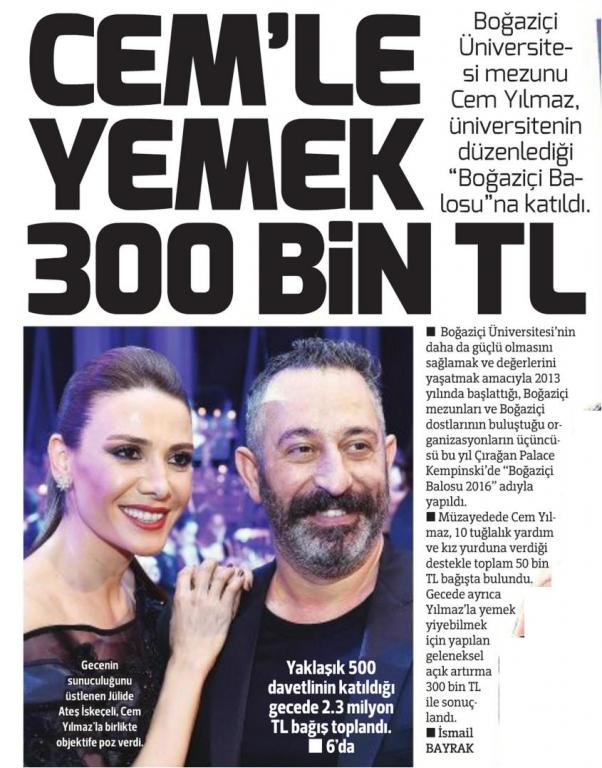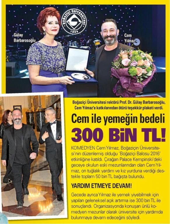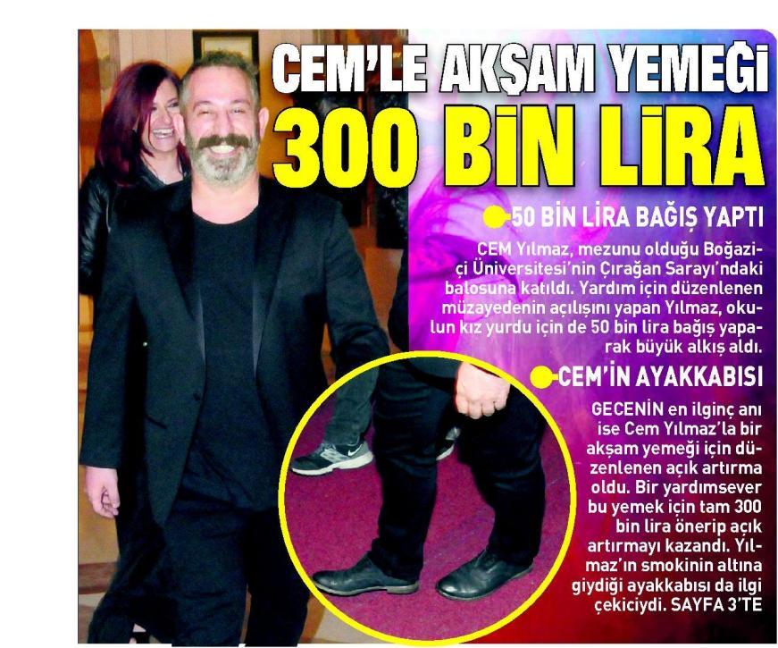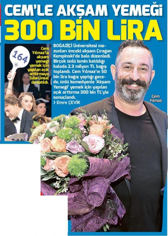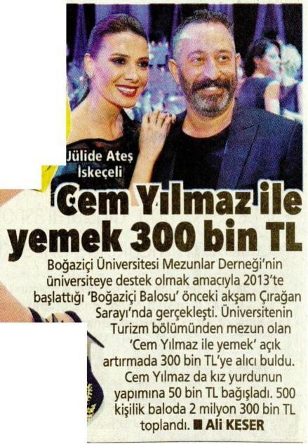 Cem Yılmaz ile yemek 300 bin TL