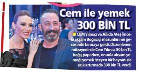Cem ile yemek 300 bin TL