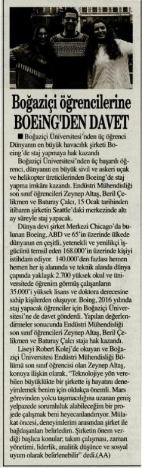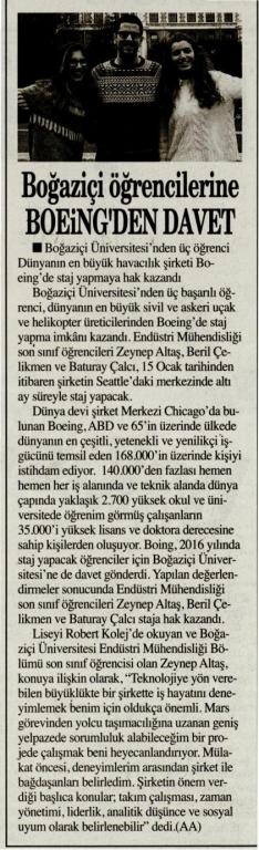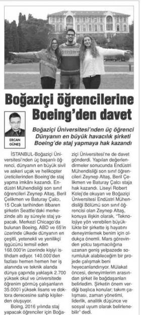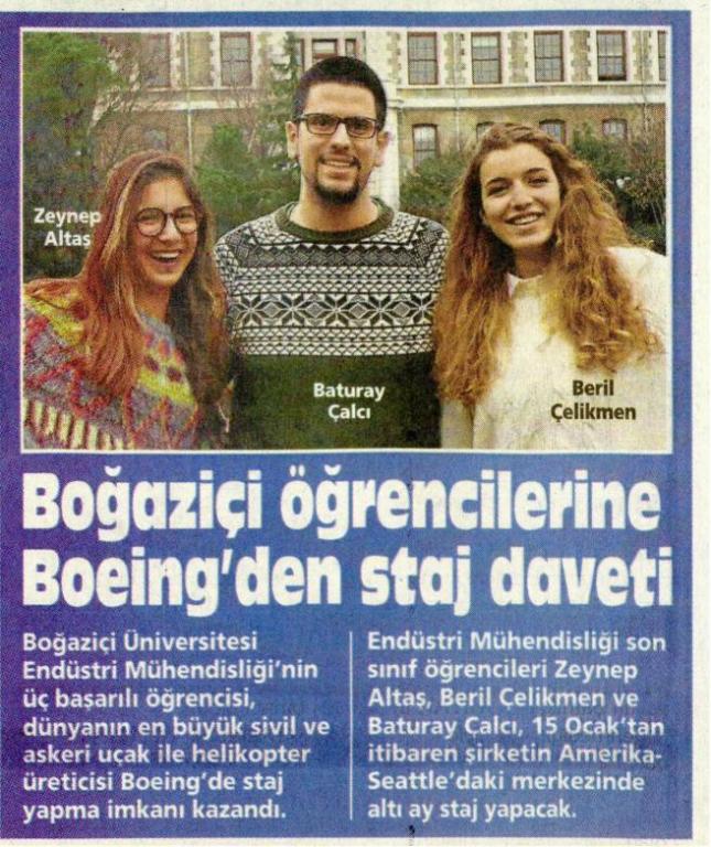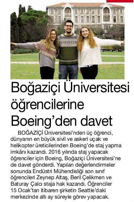 Boğaziçi öğrencilerine Boeing'den staj daveti
