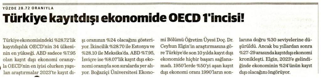 Türkiye kayıt dışı ekonomide OECD 1'incisi
