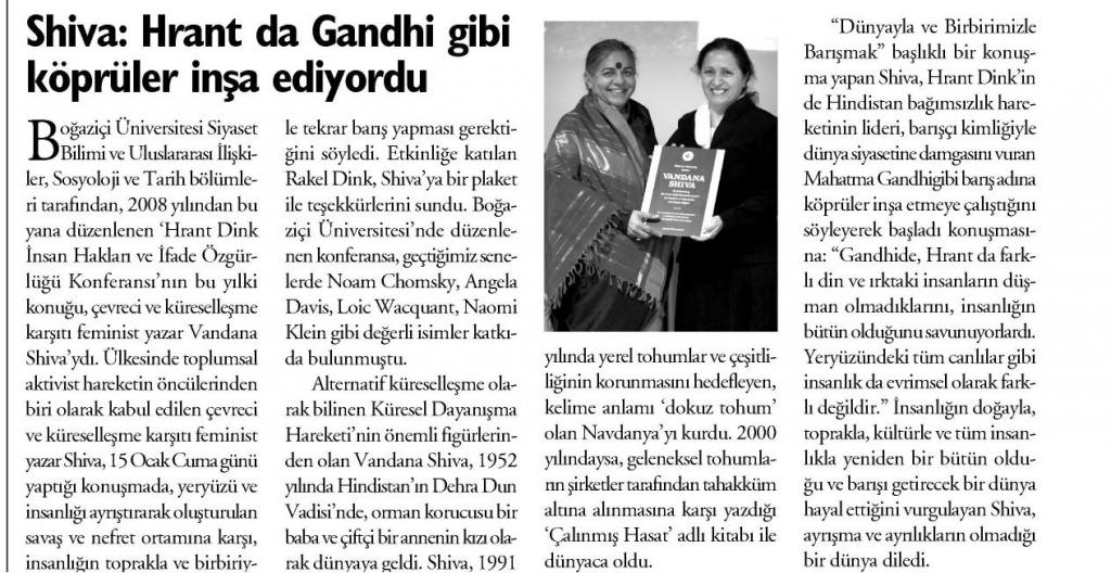 Shiva: Hrant da Gandhi gibi köprüler inşa ediyordu