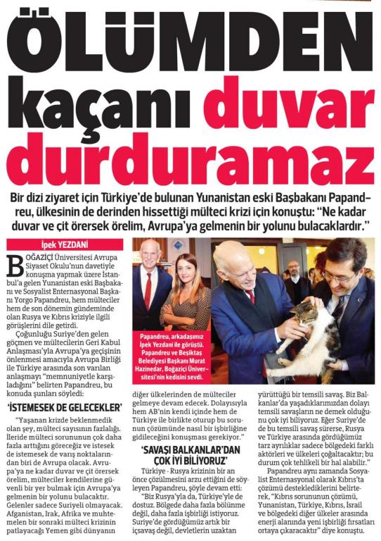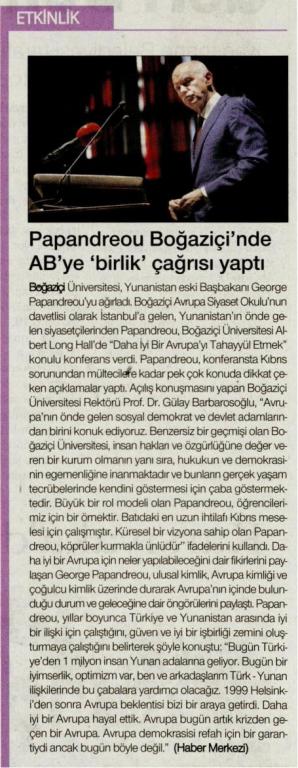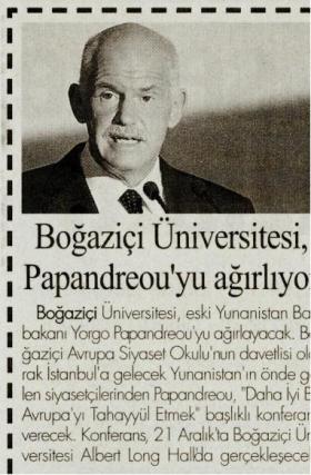 Boğaziçi Üniversitesi Papandreou'yu ağırlıyor
