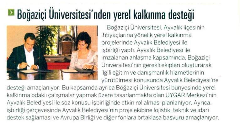 Boğaziçi Üniversitesi ve Ayvalık Belediyesi Yerel Kalkınma için anlaşma imzaladı