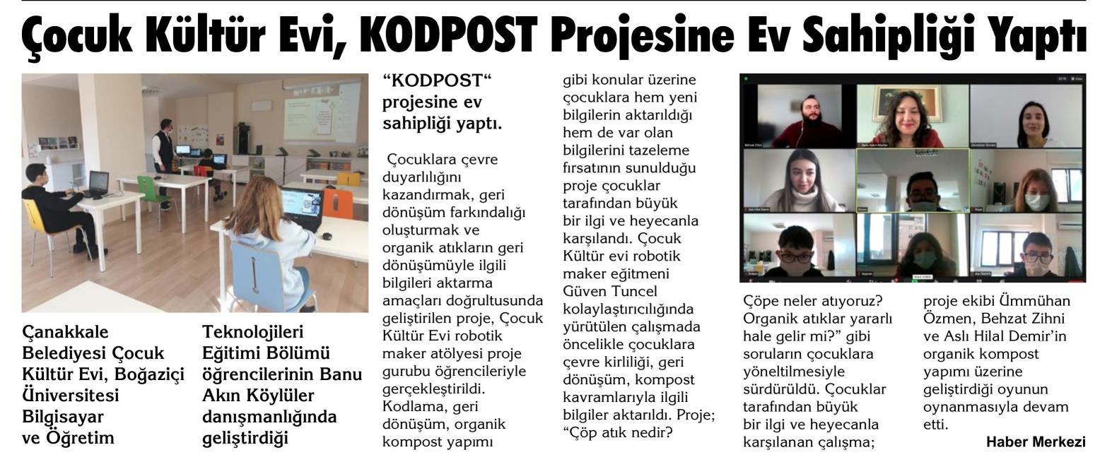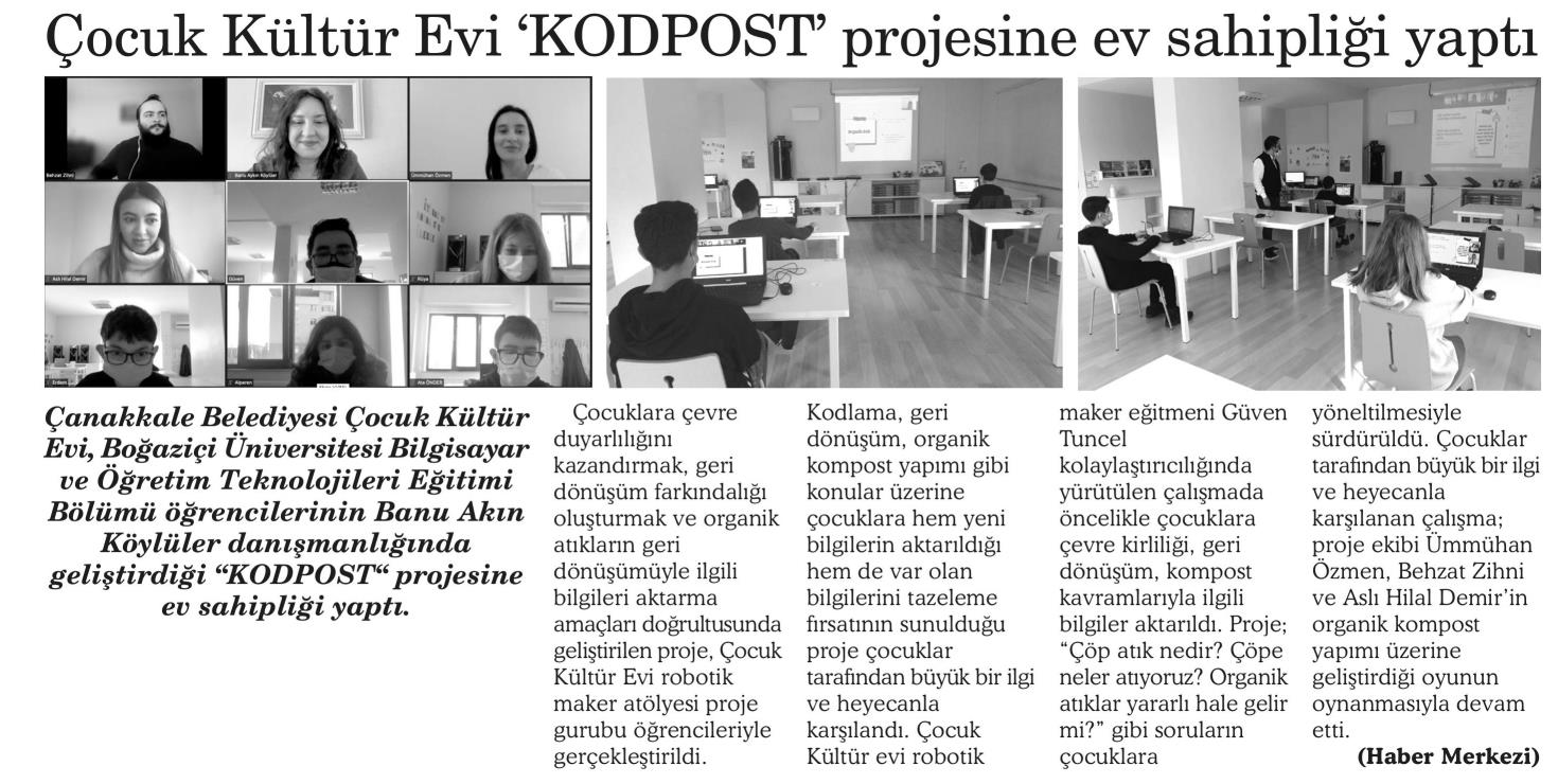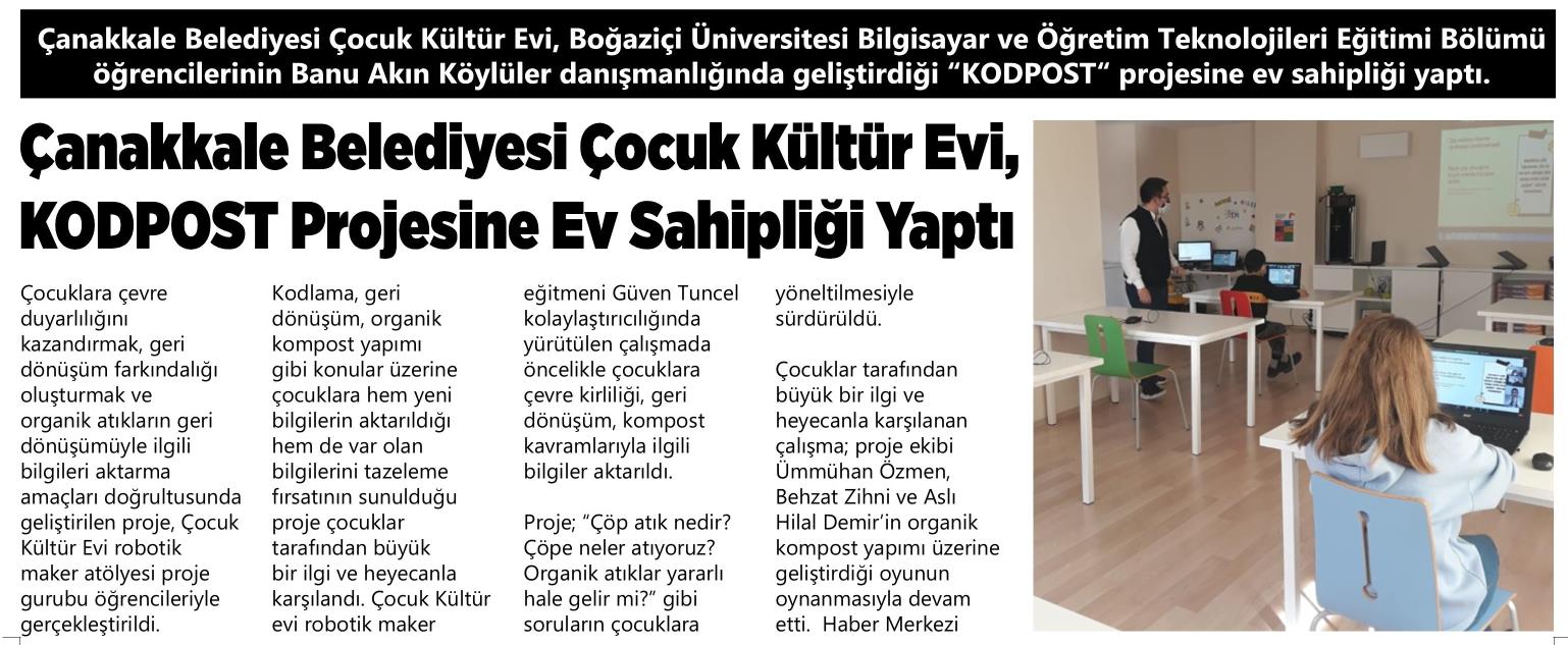 Çanakkale Belediyesi Çocuk Kültür Evi, KODPOST Projesine Ev Sahipliği Yaptı