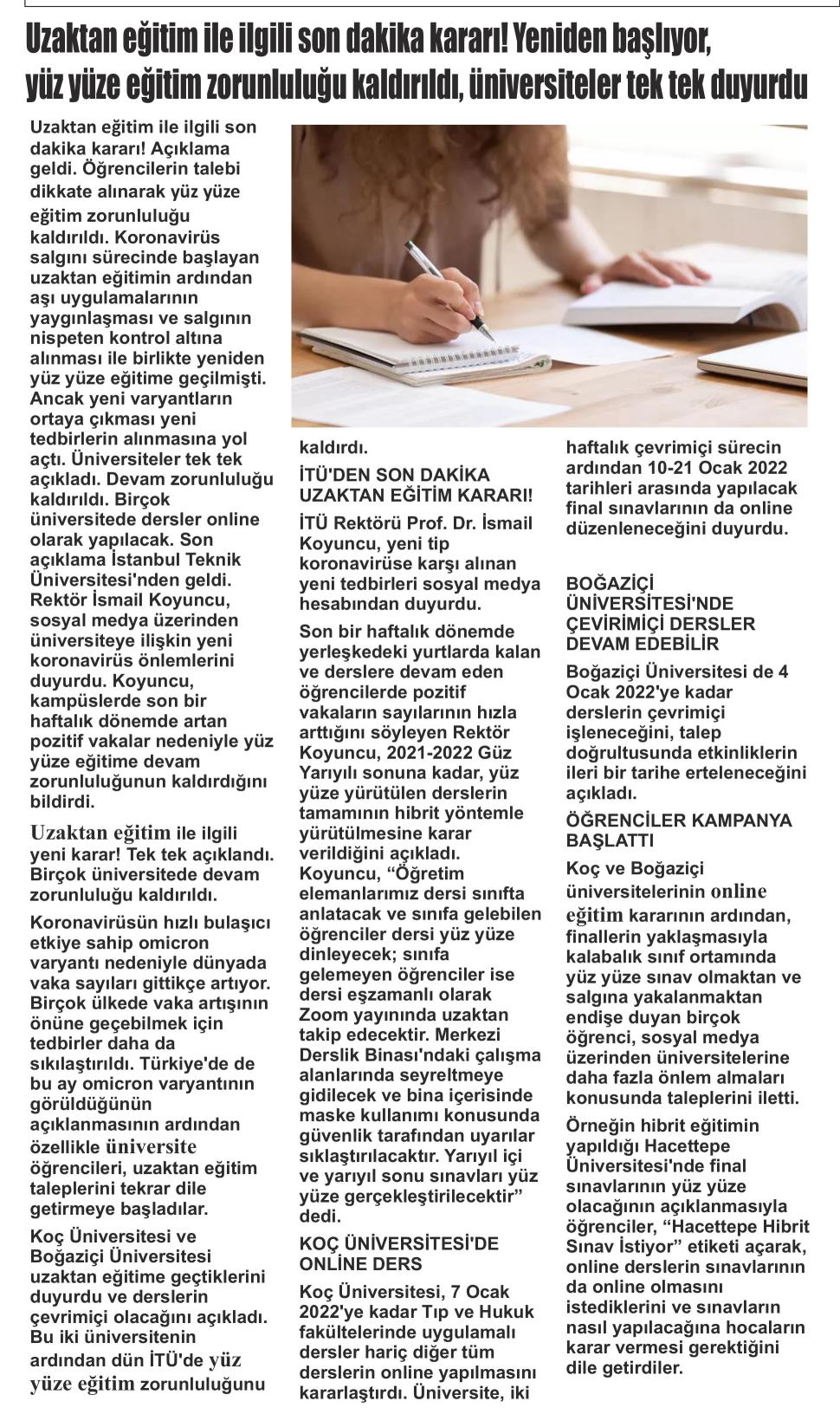 Uzaktan eğitim ile ilgili son dakika kararı! Yeniden başlıyor, yüz yüze eğitim zorunluluğu kaldırıldı, üniversiteler tek tek duyurdu