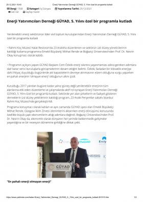 Enerji Yatırımcıları Derneği GÜYAD, 5. Yılını özel bir programla kutladı