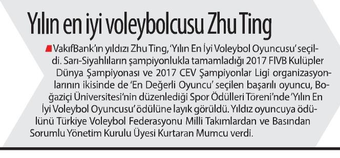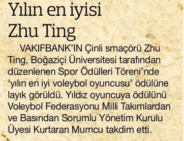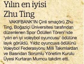 Yılın sporcusu Onbaşı Yılın voleybolcusu Zhu