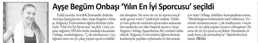 Ayşe Begüm Onbaşı 'Yılın En İyi Sporcusu' seçildi