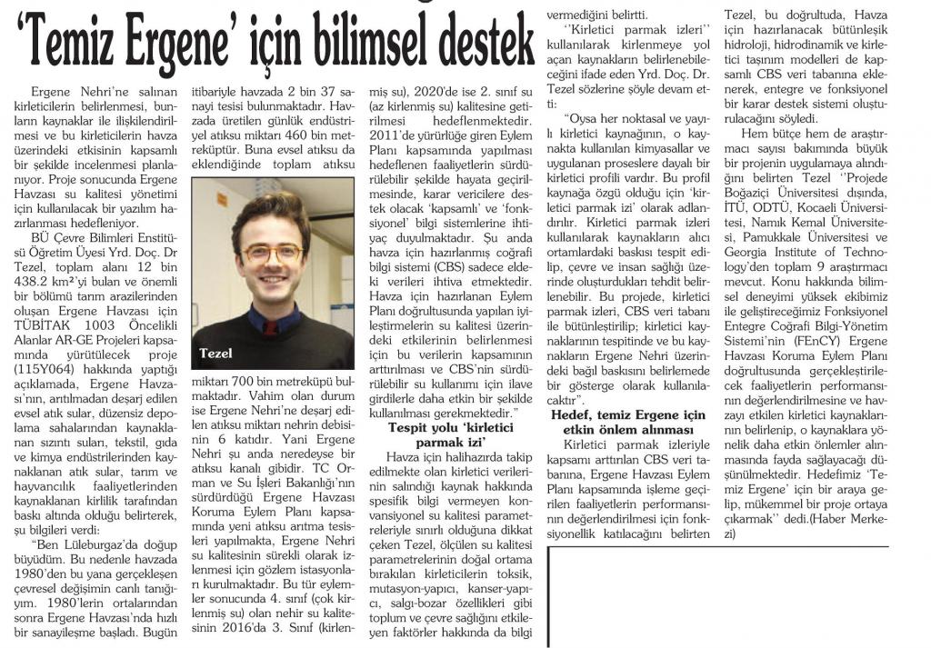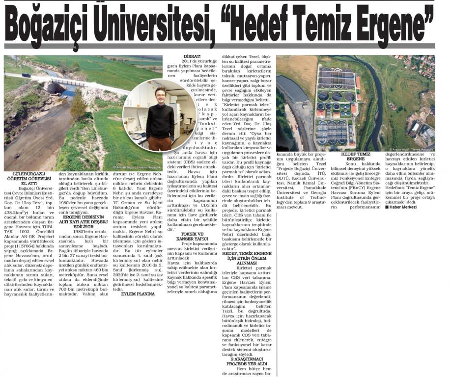 Boğaziçi Üniversitesi, ''Hedef temiz Ergene''