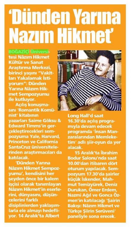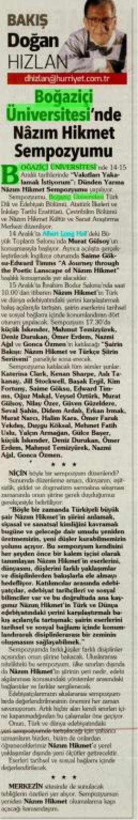 Boğaziçi Üniversitesi'nde Nazım Hikmet Sempozyumu