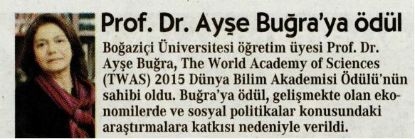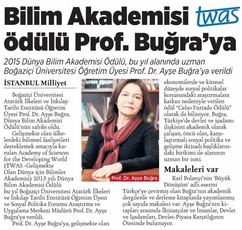 Prof. Dr. Ayşe Buğra Dünya Bilim Akademisi Ödülü'nün sahibi