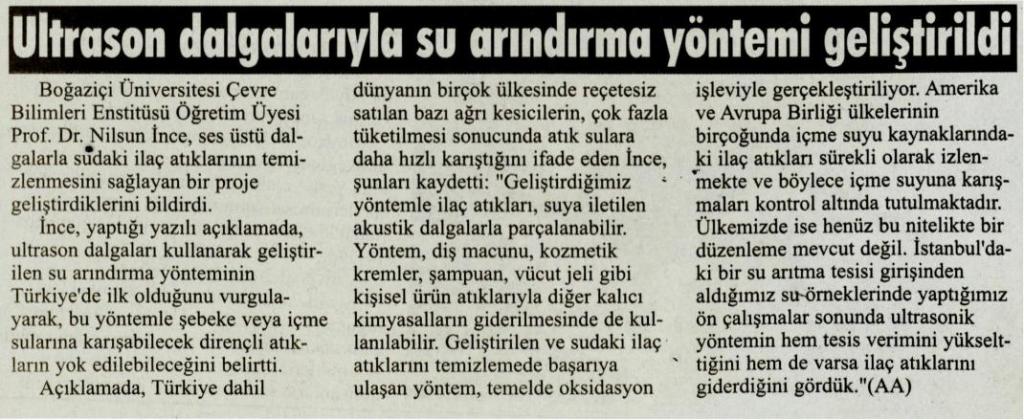 Ultrason dalgalarıyla su arındırma yöntemi geliştirildi