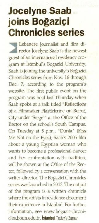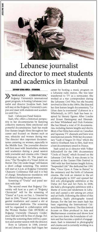 Jocelyne Saab joins Boğaziçi Chronicles series