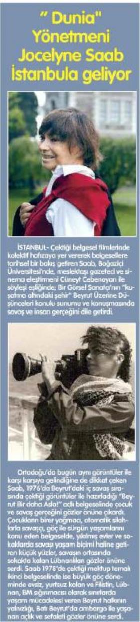 ''Dunia'' yönetmeni Jocelyne Saab İstanbul'a geliyor