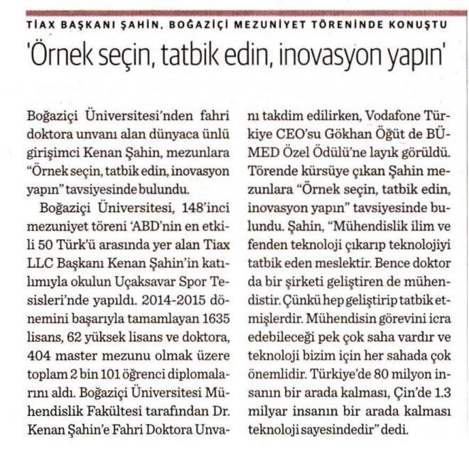 TIAX Başkanı Şahin, Boğaziçi Mezuniyet Töreninde Konuştu: 'Örnek Seçin, Tatbik Edin, İnovasyon Yapın'