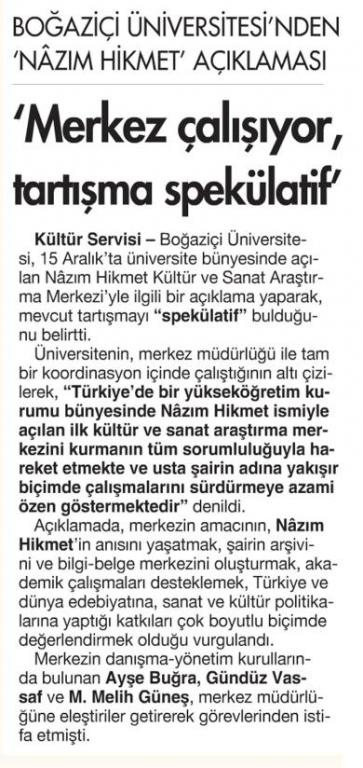 Boğaziçi'nden Nazım Hikmet açıklaması