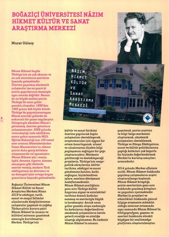 Boğaziçi Üniversitesi'nden Nazım Hikmet Kültür ve Sanat Araştırma Merkezi