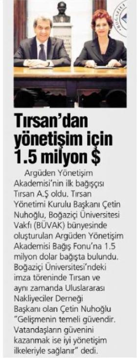 Tırsan'dan yönetişim için 1,5 milyon dolar