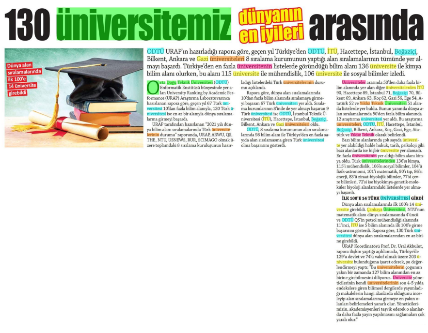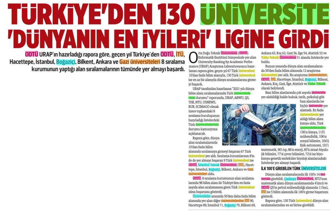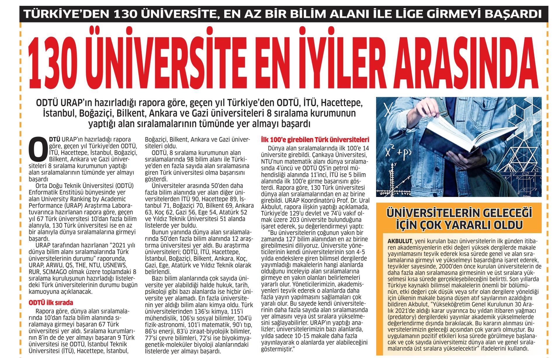 130 üniversitemiz dünyanın en iyileri arasında
