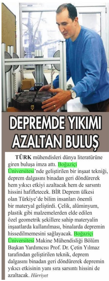 Depremde Yıkımı Azaltan Buluş