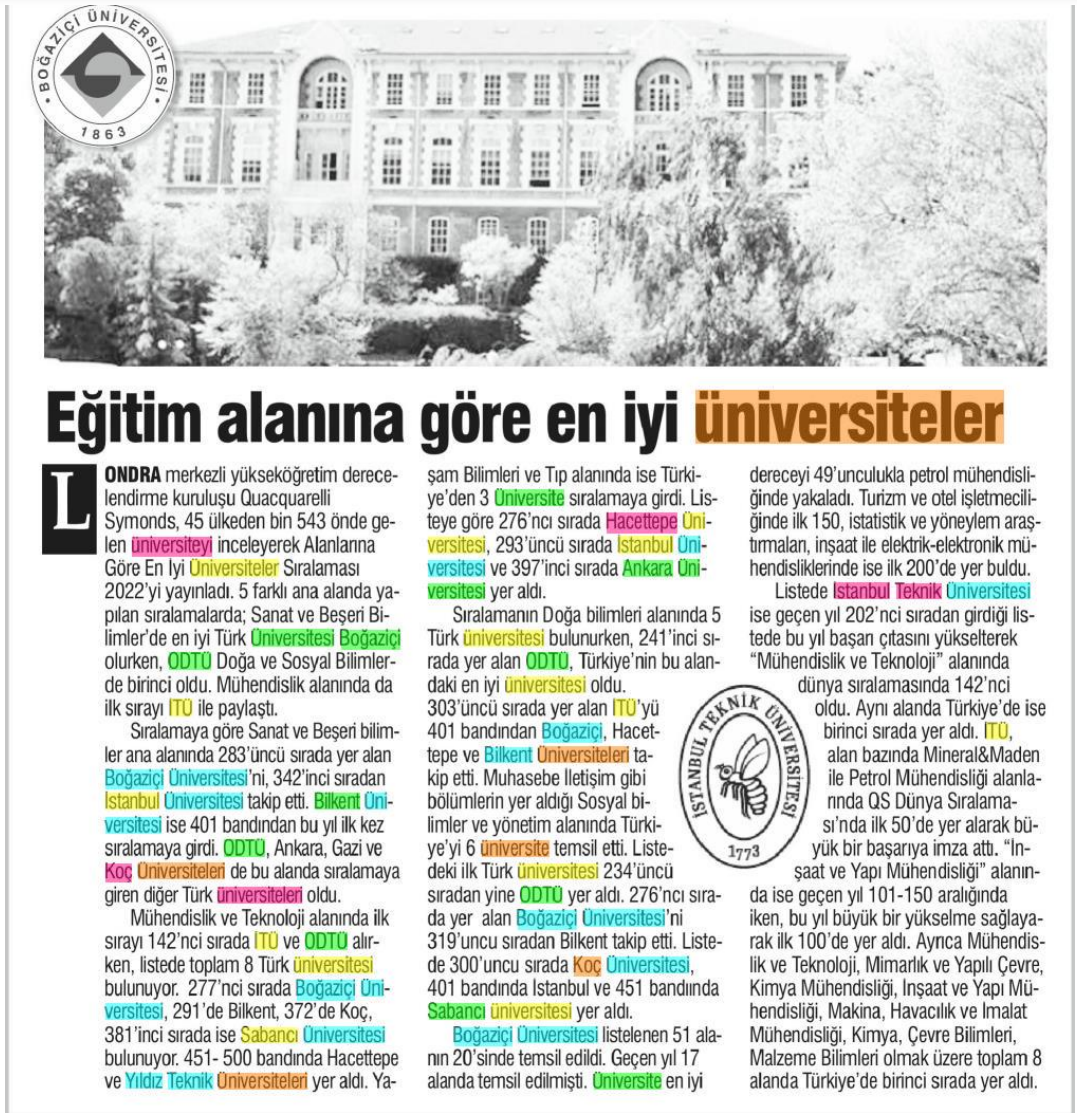 Eğitim alanına göre en iyi üniversiteler