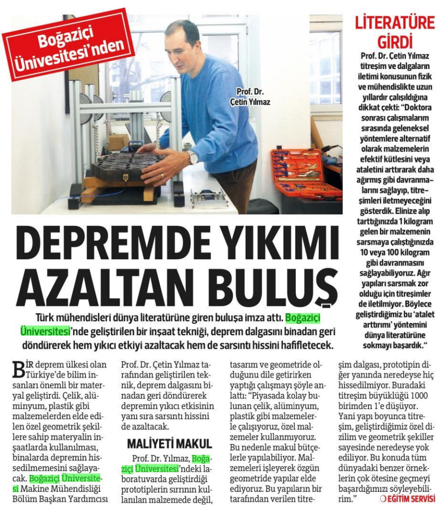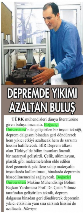 Depremde yıkımı azaltan buluş