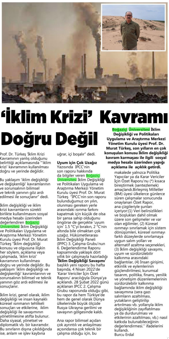 "Her söylemde 'iklim krizi' denmesi doğru değil"