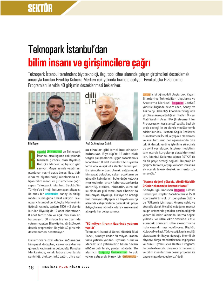 Teknopark İstanbul, Yaşam Bilimleri ve Sağlık Teknolojileri Alanlarında Çalışan Bilim İnsanı ve Girişimcilere Çağrı Yapıyor