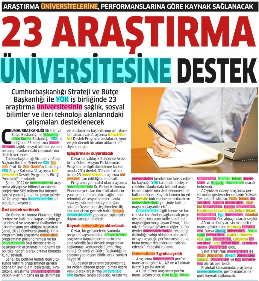 23 Araştırma Üniversitesine Destek