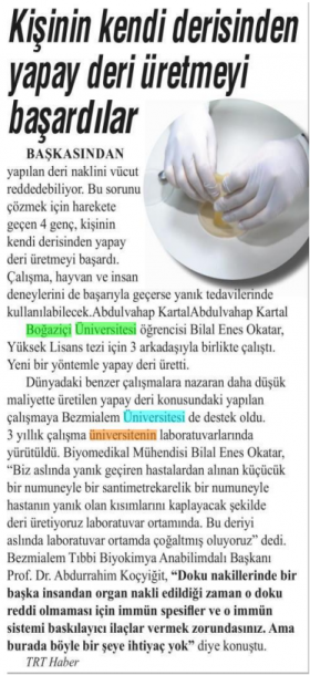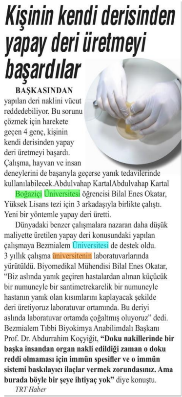 Kişinin kendi derisinden yapay deri üretmeyi başardılar