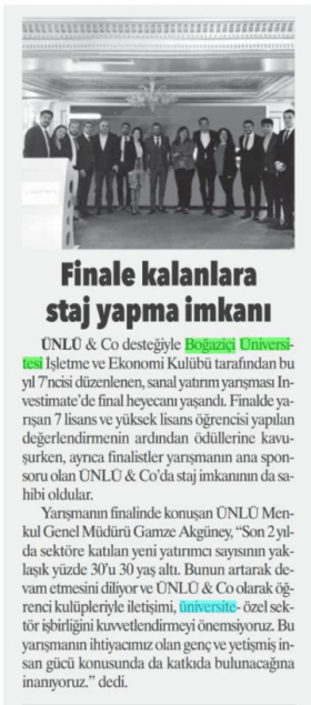 Finale kalanlara staj yapma imkanı